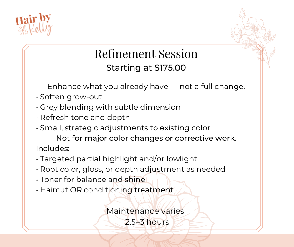 As a guest of mine, you will always receive my honest and kind input as we map out your hair goals.